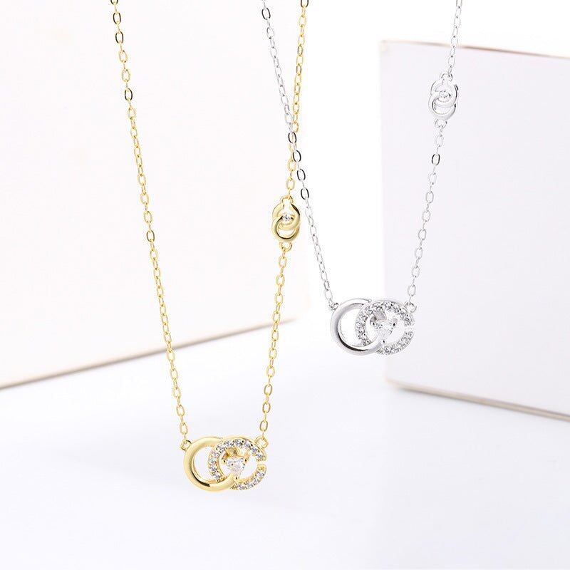 S925 スターリングシルバー ダブルCデザインネックレス