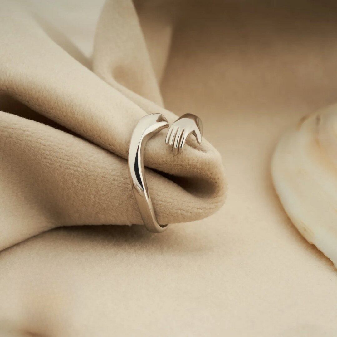 サイズ調整可能で、どの指にもぴったりフィットするユニークなデザインのリング。まるで優しく指をハグしているような感覚をオシャレに楽しめます。普段使いはもちろん、大切な人へのペアリングとしてのプレゼントにもぴったりです